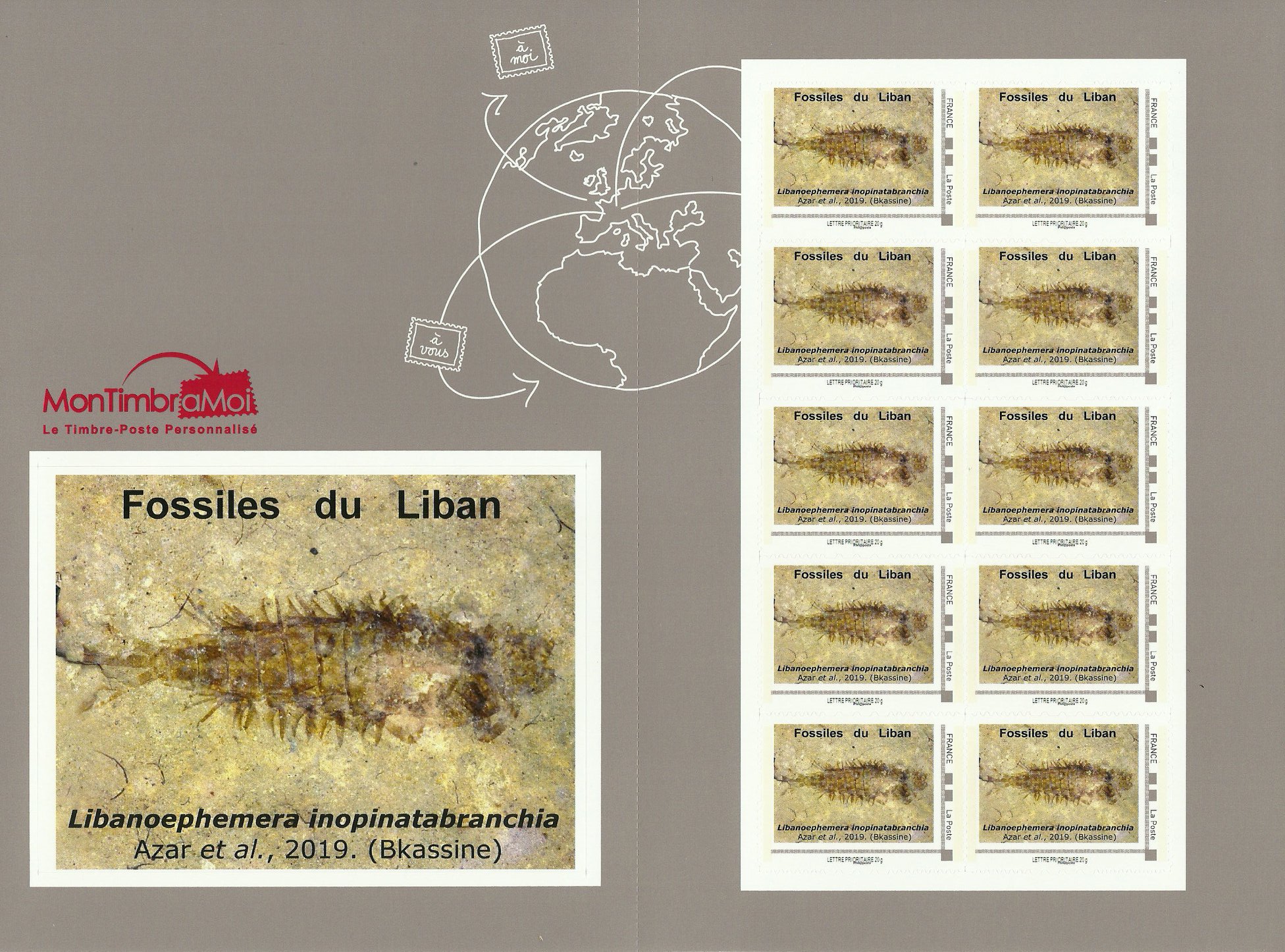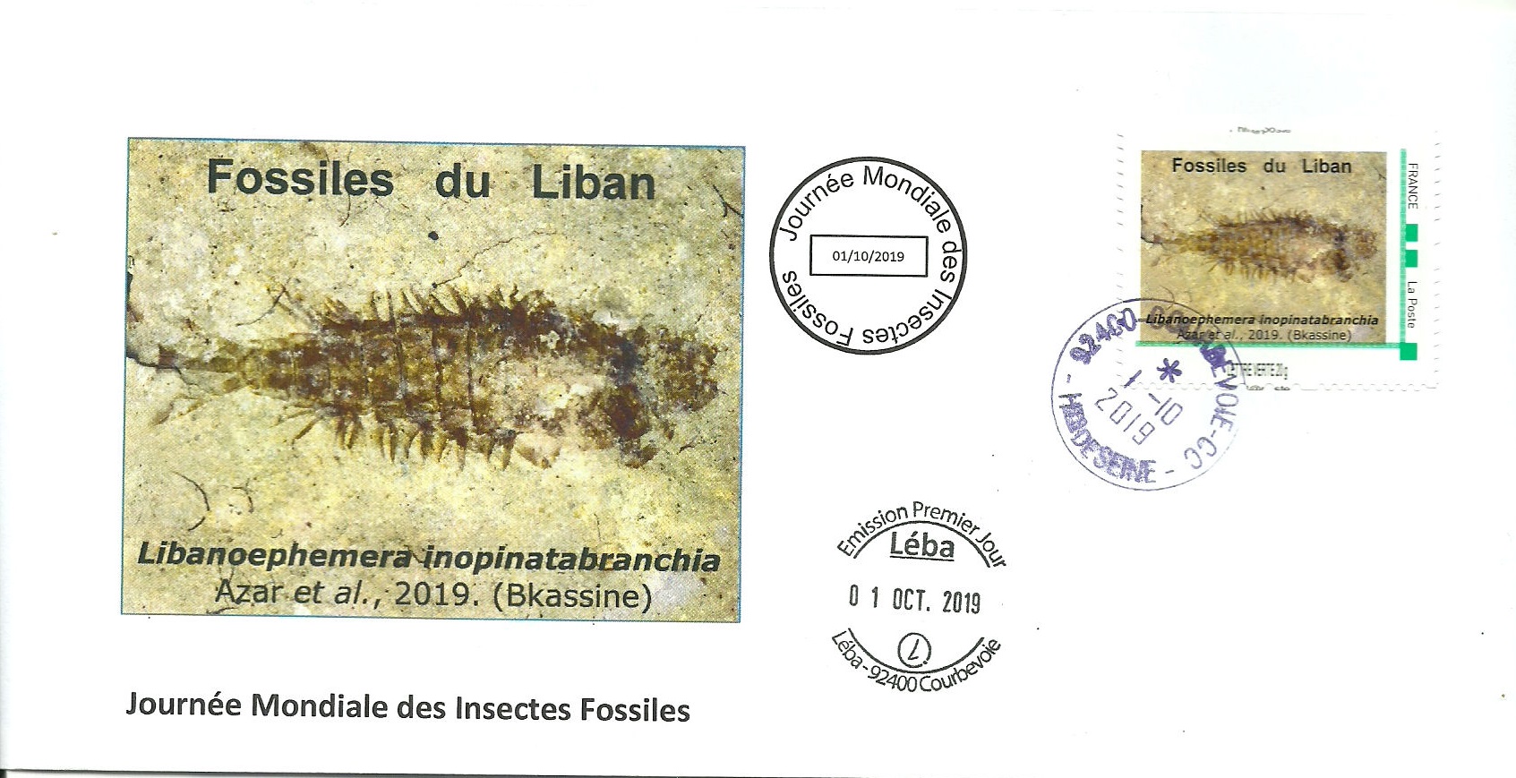 Journée Mondiale des Insectes Fossiles: Pour la 4ème année consécutive l'Association Léba coopère avec D. Dany Azar pour l'émission d'un timbre spécial français… sur les fossiles insectes, mettant en valeur la richesse paléontologique du Liban. Cette année c'est la larve d'un éphémère (130Millions d'années) découverte dans la région de Bkassine.